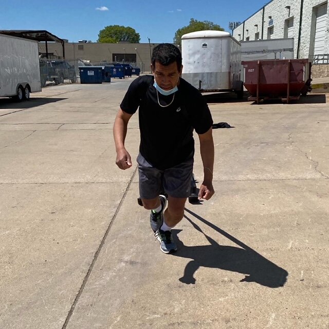 2. Straight Arm Waiter Walk: Extend through the shoulder and push up into the plate as hard as you can. Elbow should be locked out.