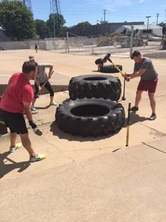 reverse sled pulls x 100 feet Add weight to small sleds with straps.
